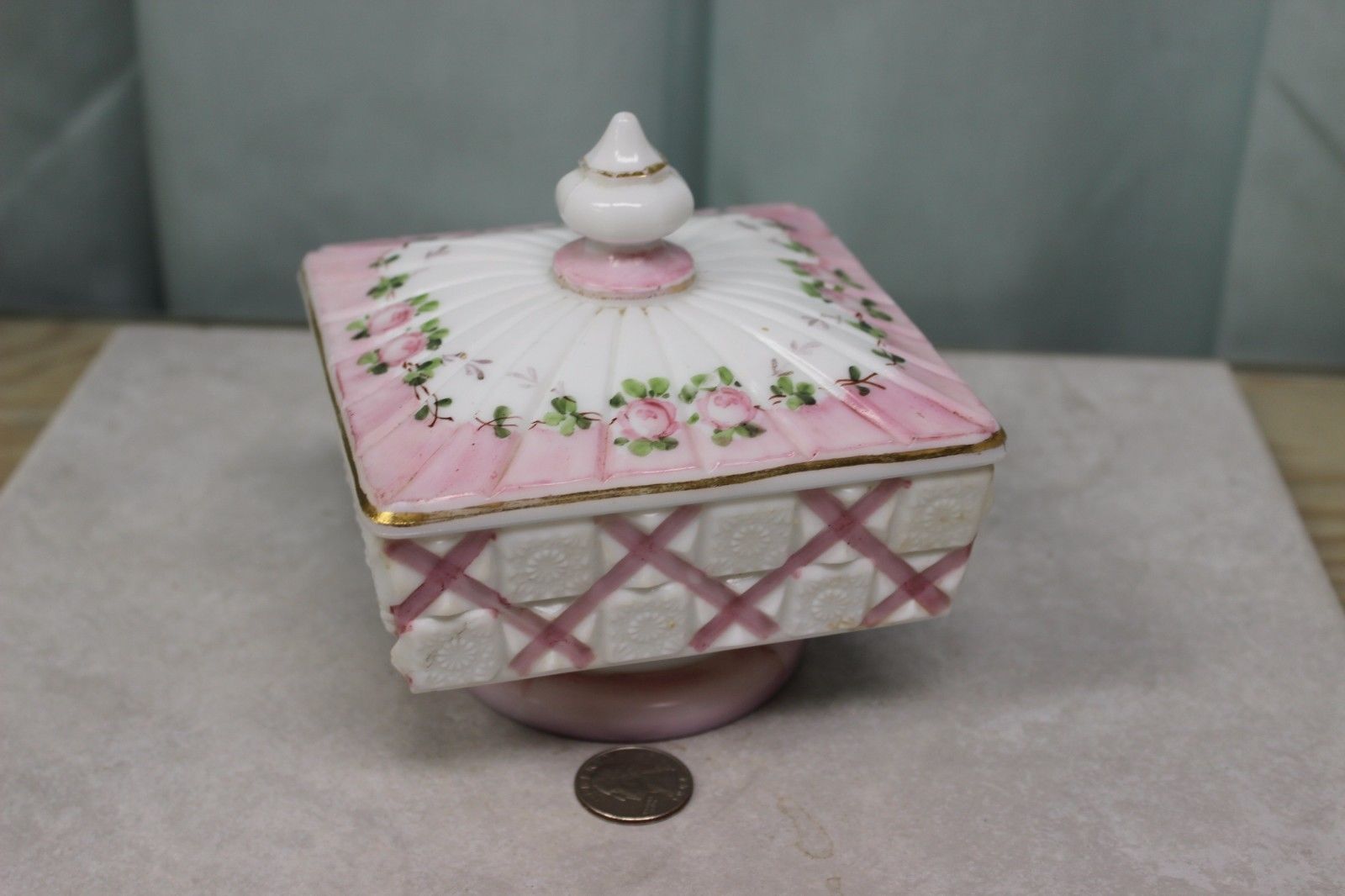 Westmoreland Hand-painted Footed Covered Milk Glass Dish