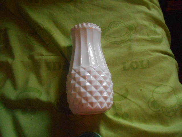 WHITE MILKGLASS DIAMOND PATTERN 7 INCH VASE