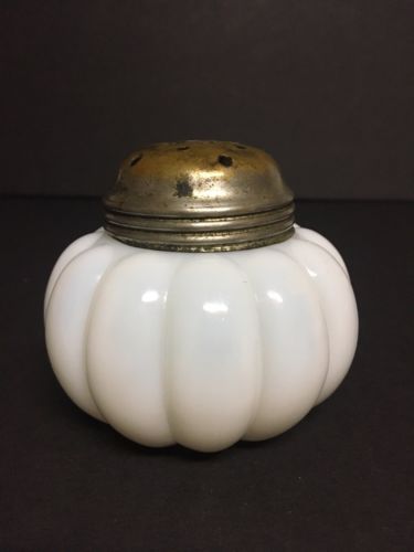 Title (ebay affiliate link): Vintage Opaque (Milk Glass) Round Ribbed Sugar/Flour/Salt/Powder (???) Shaker 3"