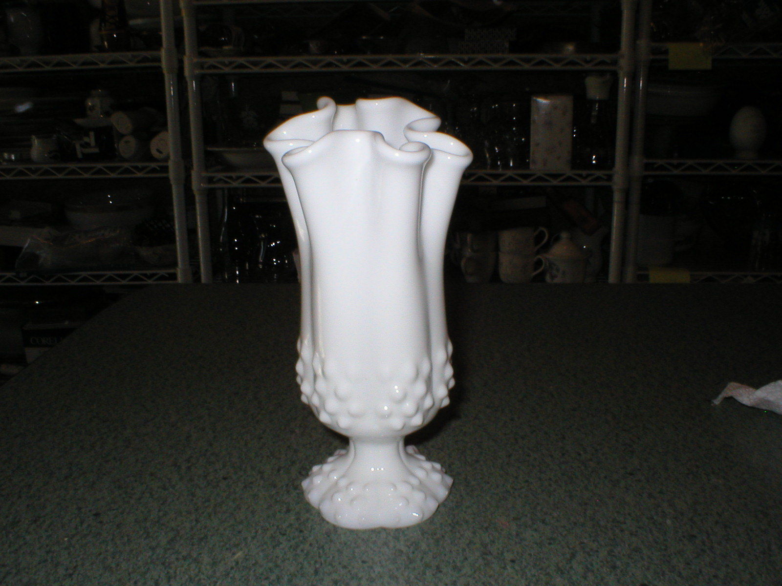 Title (ebay affiliate link): Vintage White Milk Glass Hobnail Kerchief Scalloped Vase Swung Fenton 6 1/2" T