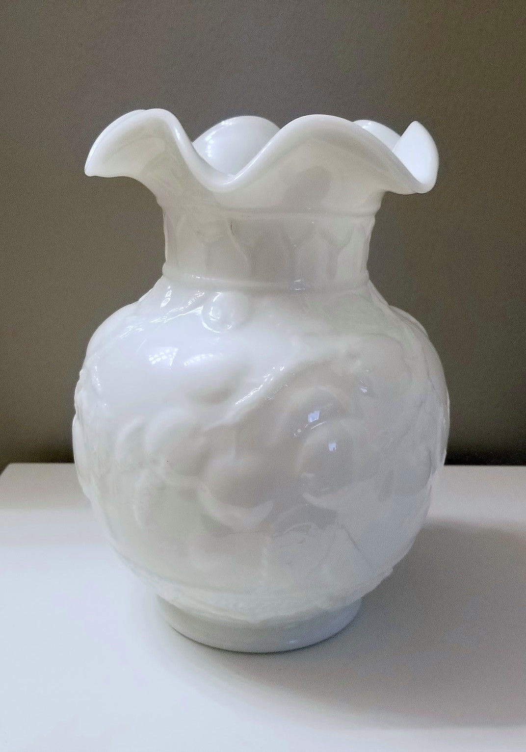 Title (ebay affiliate link): Fenton Art glass Milk Glass Apple Tree Vase Crimped Top 1561 1930s
