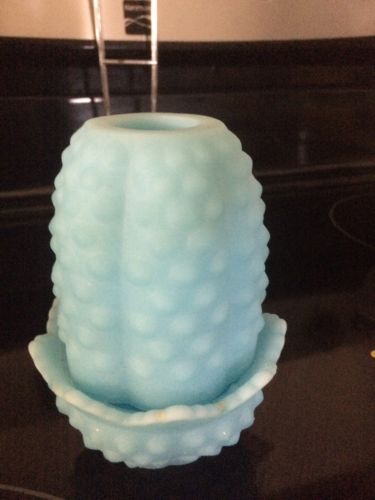 Vintage Fenton Hobnail Blue Satin Milk Glass Fairy Lamp