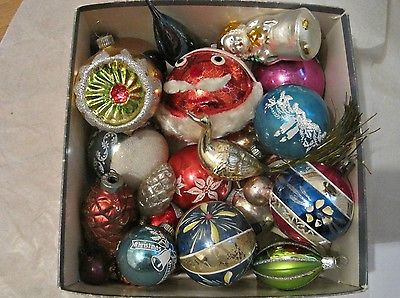 Title (ebay affiliate link): 26 VINTAGE ANTIQUE GLASS ORNAMENTS SHINY BRITE GERMANY POLAND