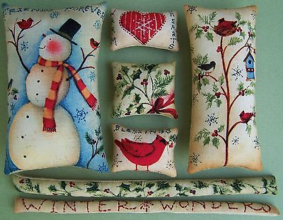 New! 7 Prim Christmas Winter Snowman Ornies Tucks Bowl Fillers Gift RedHedPrims