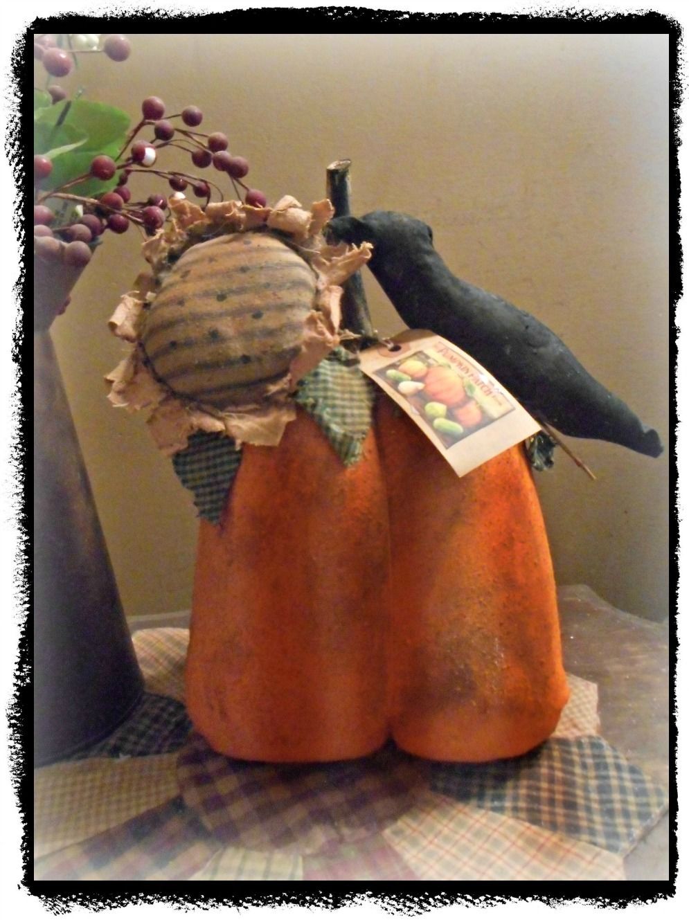Title (ebay affiliate link): Primitive Handmade*Pumpkin with Sunflower and Black Crow` Fall Halloween`