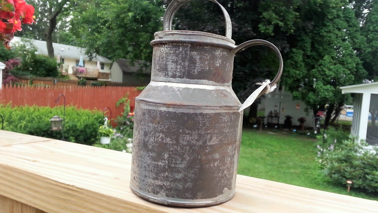 Antique Tin Creamer With Handled Lid