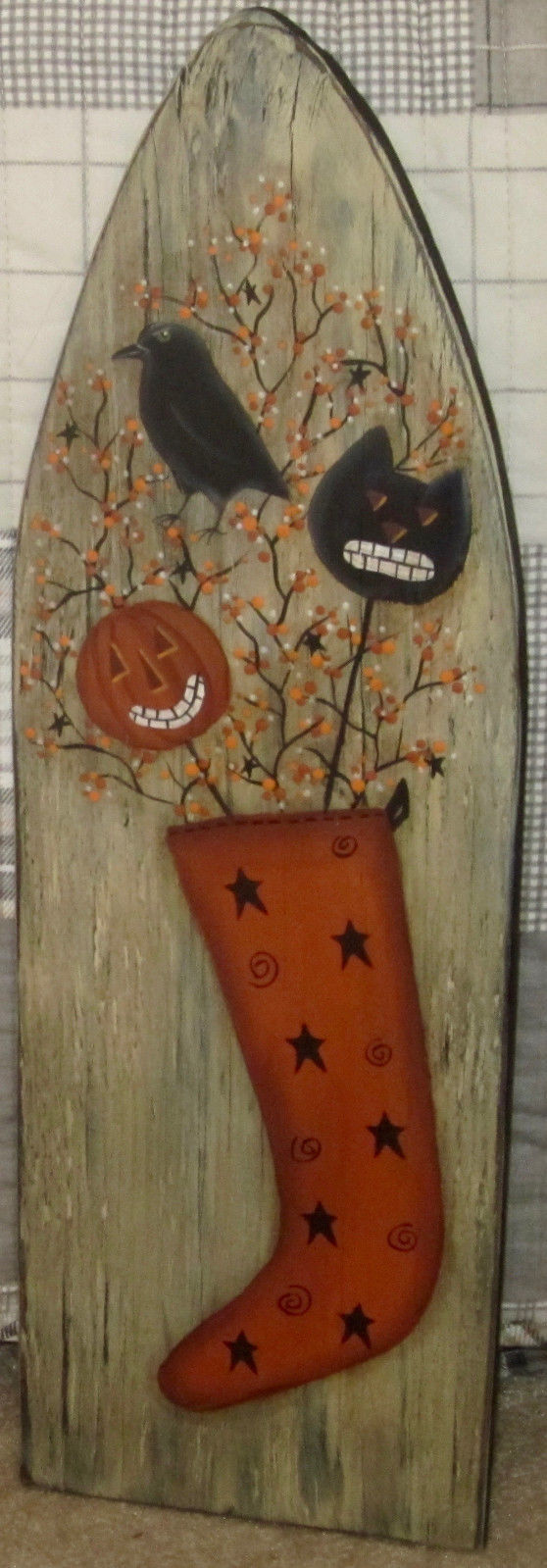 Title (ebay affiliate link): *~*PRIMITIVE*~* HP FOLK ART PRIM STOCKING * PUMPKIN * CAT * CROW *~* STRETCHER