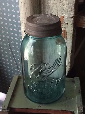 Antique Vintage BLUE BALL JAR - Cottage Farmhouse Decor Marked 7 on bottom
