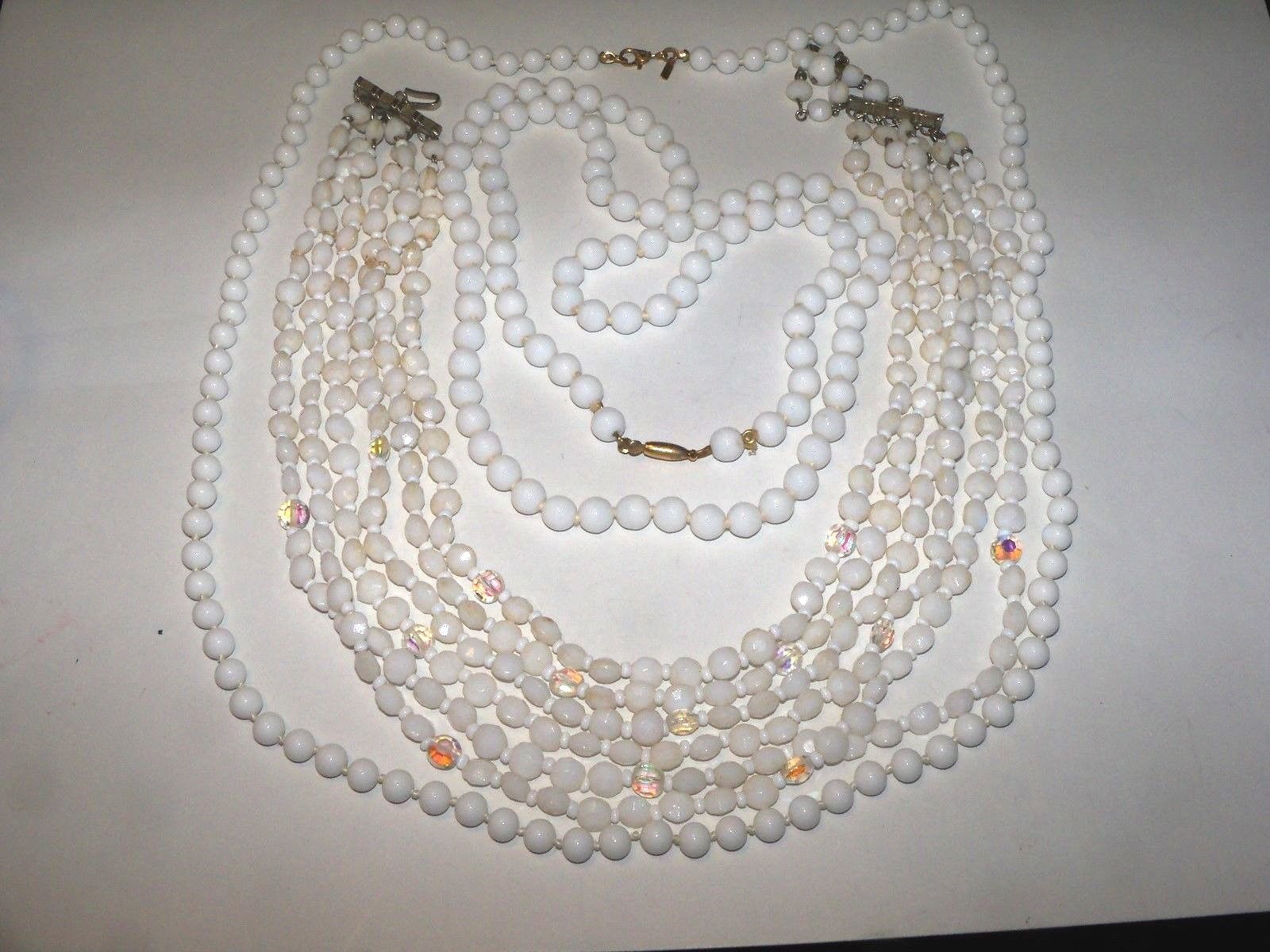 Title (ebay affiliate link): Vintage MONET Multi Strand BIB Milk GLASS Crystal Bead Necklaces