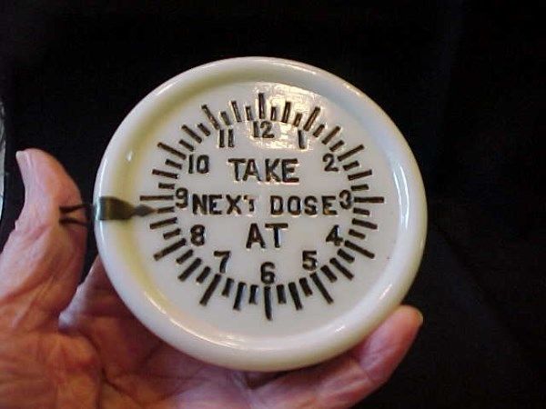 Title (ebay affiliate link): Old Milk Glass Medicine Dose Reminder/ Pat Nov 17, 1896/ Wanamaker Store Label
