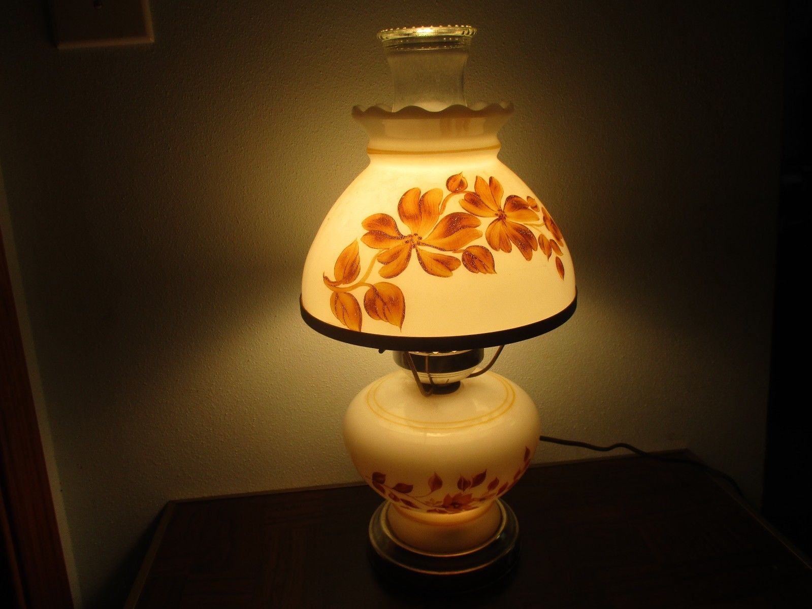 Title (ebay affiliate link): Vintage Collectible Electric hurricane Table Lamp-Milk Glass & Floral-Works-Nice