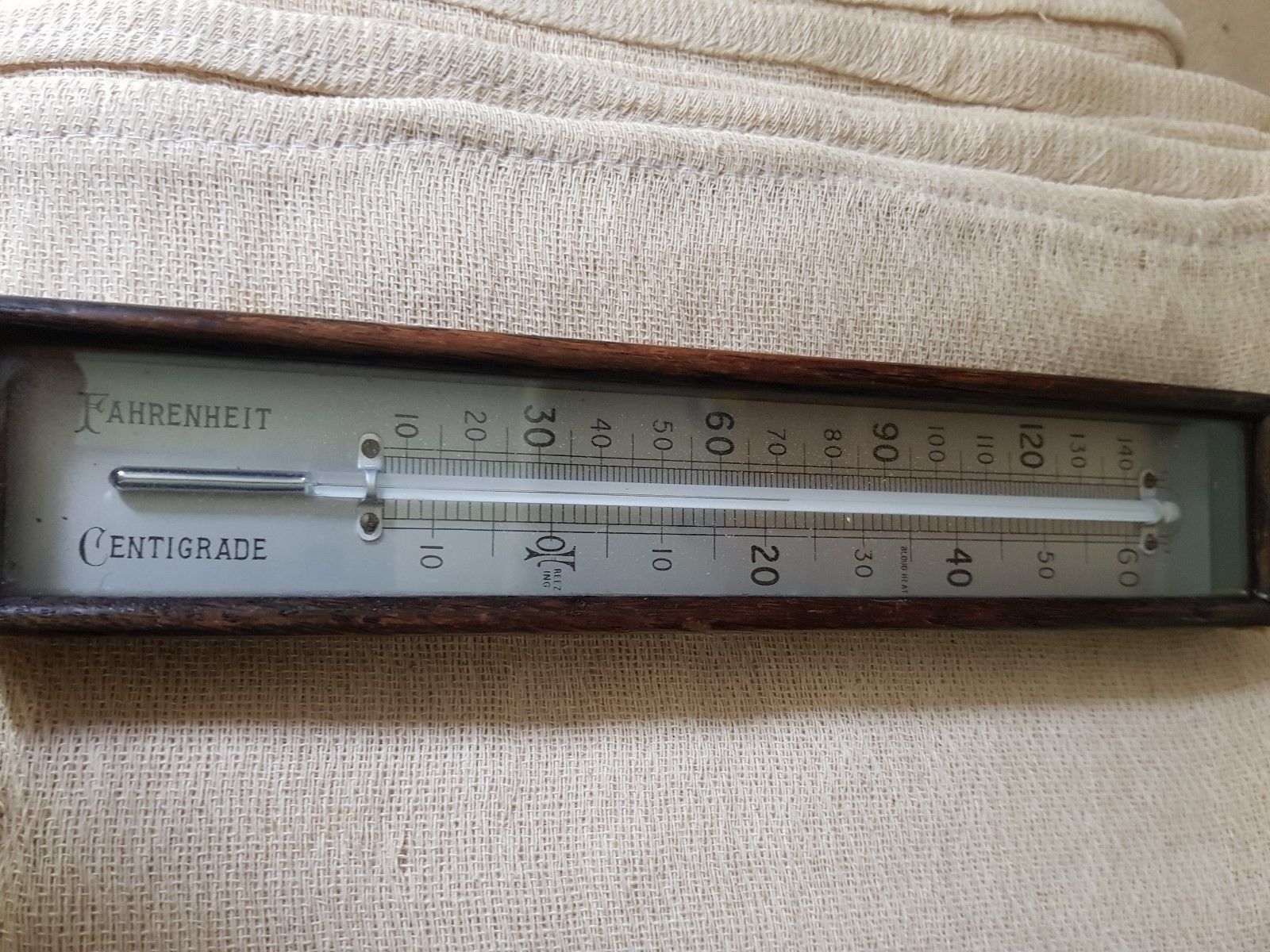 Title (ebay affiliate link): Antique Oak Wall Fahrenheit/Centigrade Thermometer 26 cm