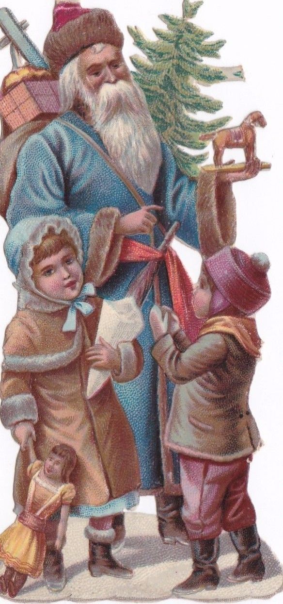 Antique Victorian Die Cut Scrap Santa Claus Father Christmas Children toys