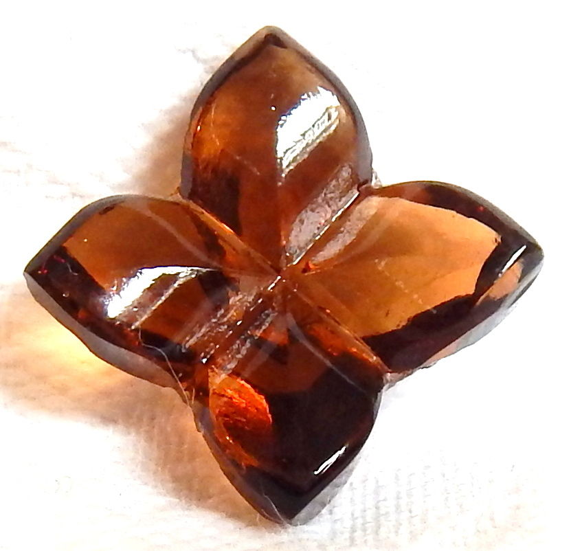 VINTAGE 1930''S TRANSPARENT FACETED ROOT-BEER DEPRESSION GLASS FLOWER BUTTON