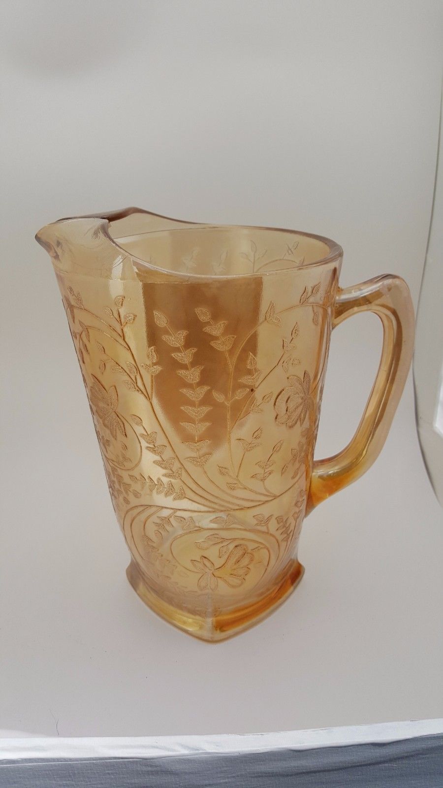 Title (ebay affiliate link): Jeanette Floragold Louisa Marigold Depression Glass Pitcher Heavy Excellent
