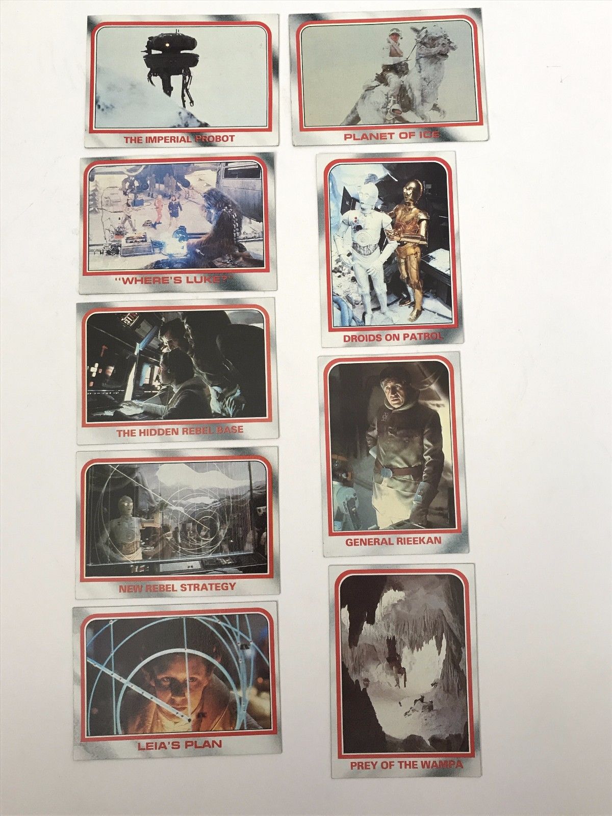 Title (ebay affiliate link): Vintage TOPPS 1980 Star Wars EMPIRE STRIKES BACK Cards Lot of 9 (TWESBSD2)