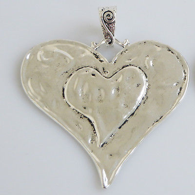 Title (ebay affiliate link): 2 x Antique Silver Large Charms Hammered Hearts Pendant Jewelry Findings 64x61mm