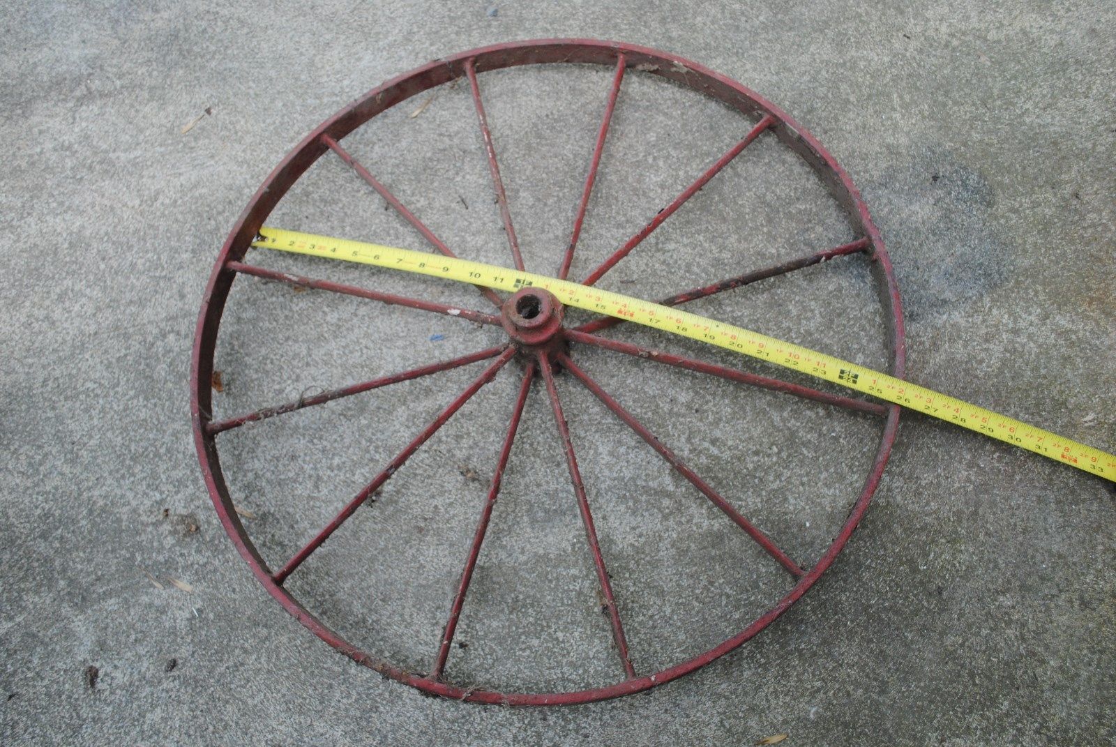 Title (ebay affiliate link): Primitive Antique Cast Iron Steel 12 Spoke Wagon Wheel old vintage