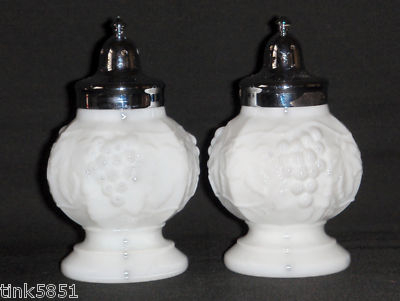 IMPERIAL LOGANBERRY MILKGLASS SALT & PEPPER SHAKERS,EUC
