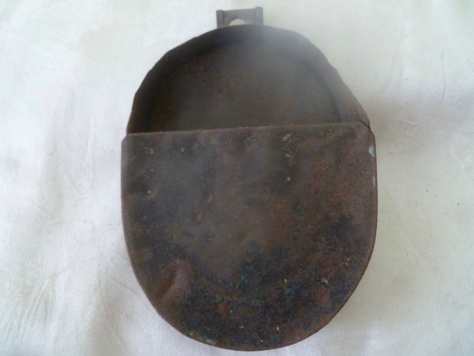 Title (ebay affiliate link): Antique Fireplace Kitchen Tin Metal Wall Pocket Primitive Hand Made Oval Box