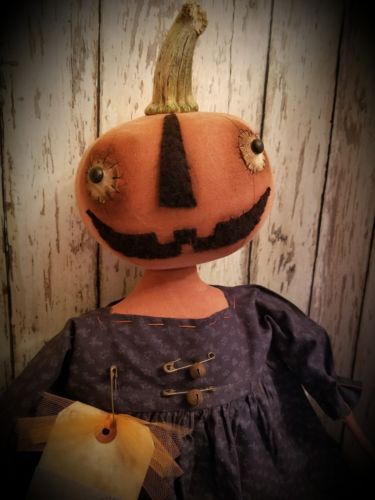 Title (ebay affiliate link): Primitive Halloween Pumpkin Doll with Real Dried Stem ~Fall~