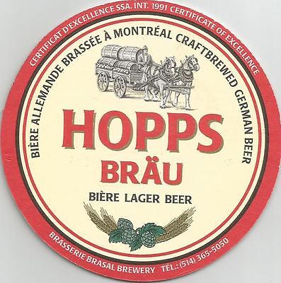 Canadian BRASAL HOPPS BRAU LAGER BEER HOPPS APPLE BEER 1991 BEER COASTER