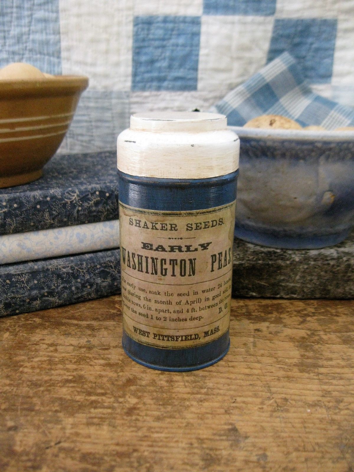 Title (ebay affiliate link): Antique Pantry Tin with Shaker Seed Label Early Washington Peas