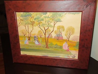Title (ebay affiliate link): Naive Vintage American Watercolor Outdoor Scene - Lovely Sponge-Painted Frame