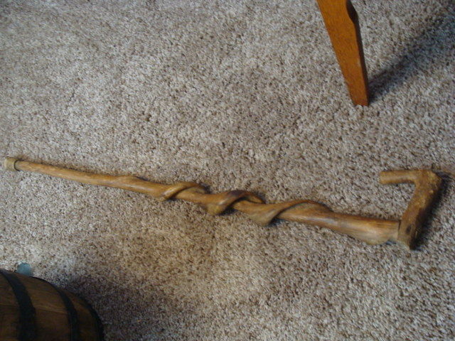 old hand made wood sprial Cane also Movie Prop " Ride with Devil" folk art