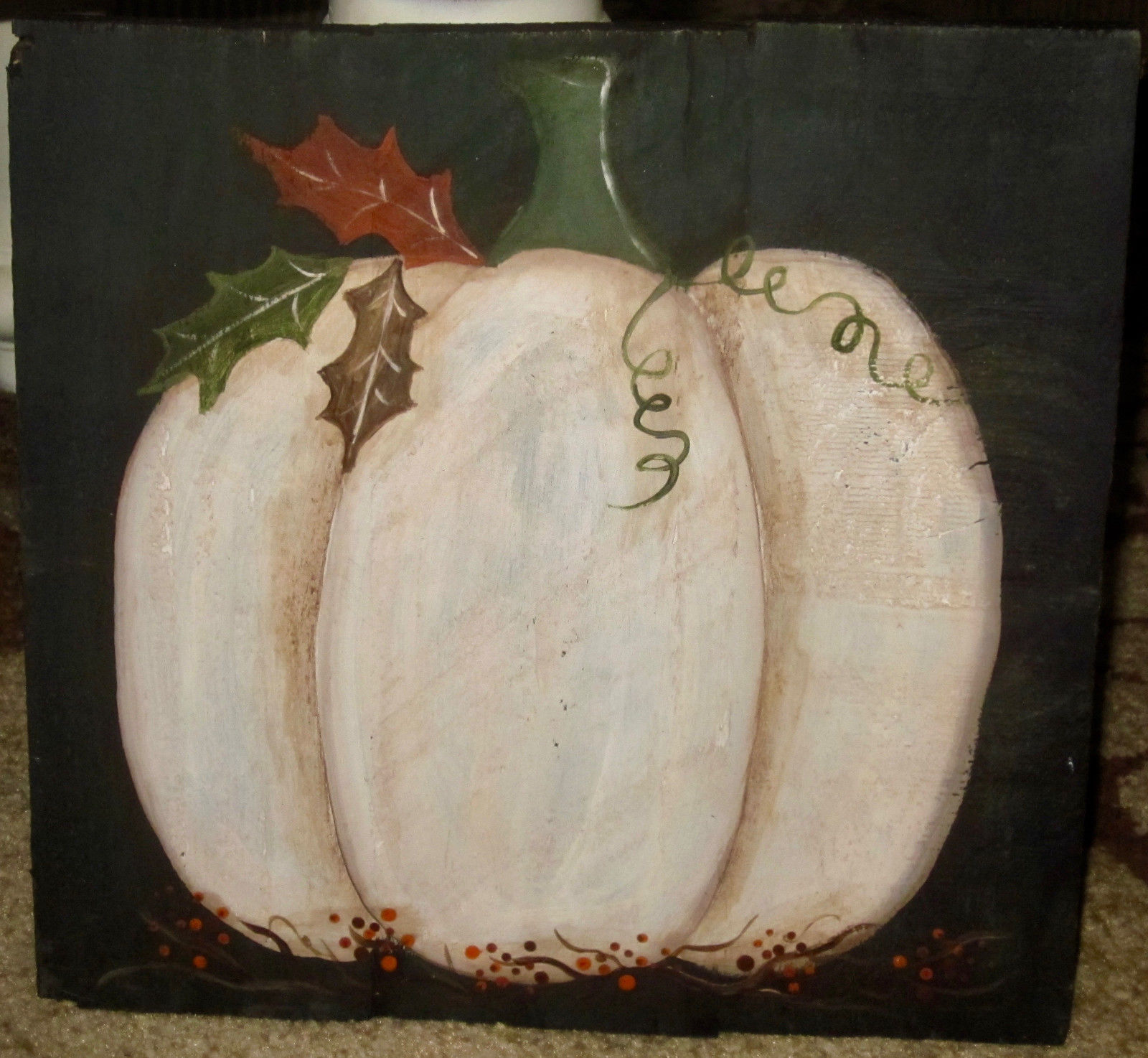 Title (ebay affiliate link): *~*PRIMITIVE*~* HP FOLK ART PRIM WHITE PUMPKIN *~* FALL *~* RECLAIMED WOOD