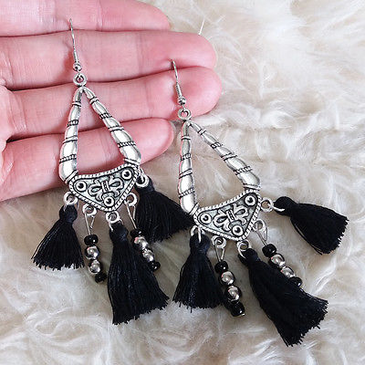 Title (ebay affiliate link): Vintagte Womens Bohemian Hippies Antique Black Tassels Bead Dangle Hook Earrings