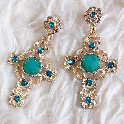 Title (ebay affiliate link): Vintage Womens Antique Light-Gold-Color Green Beads Hollow Charm Stud Earrings