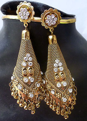 Antique Gold Plated Mike Shape 6 cm Indian Wedding CZ Jhumka Jhumki /Earrings