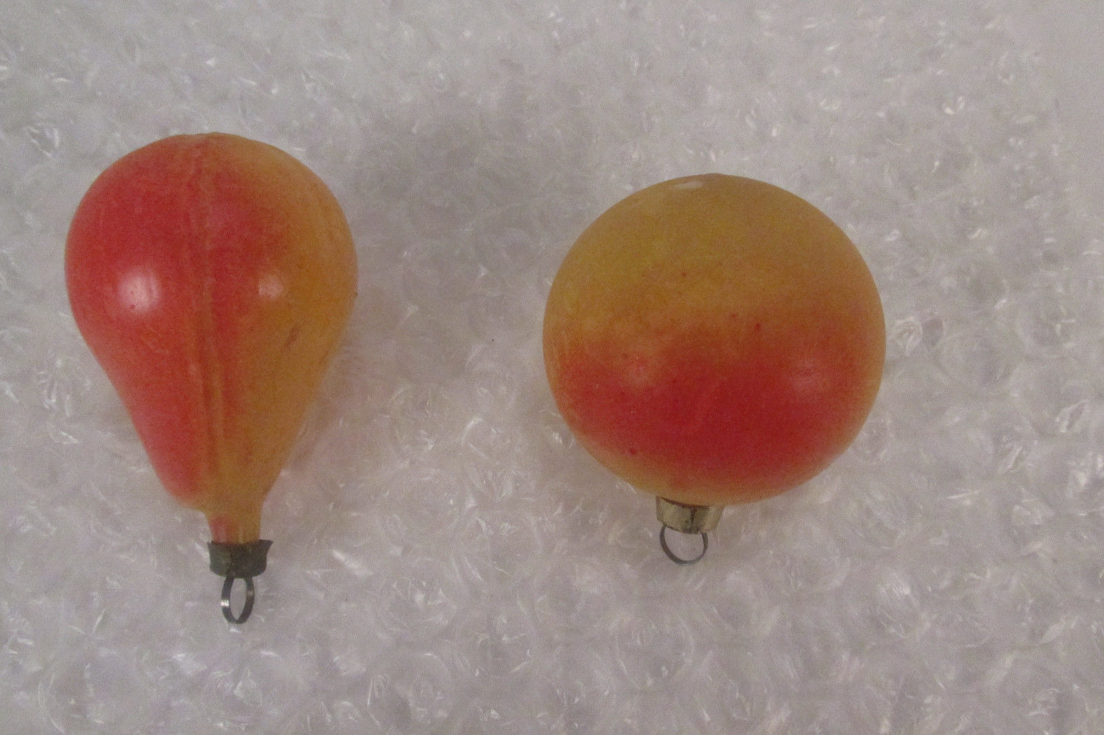 2 Vintage Small Unsilvered Glass Fruit Christmas Ornaments Pear & Peach
