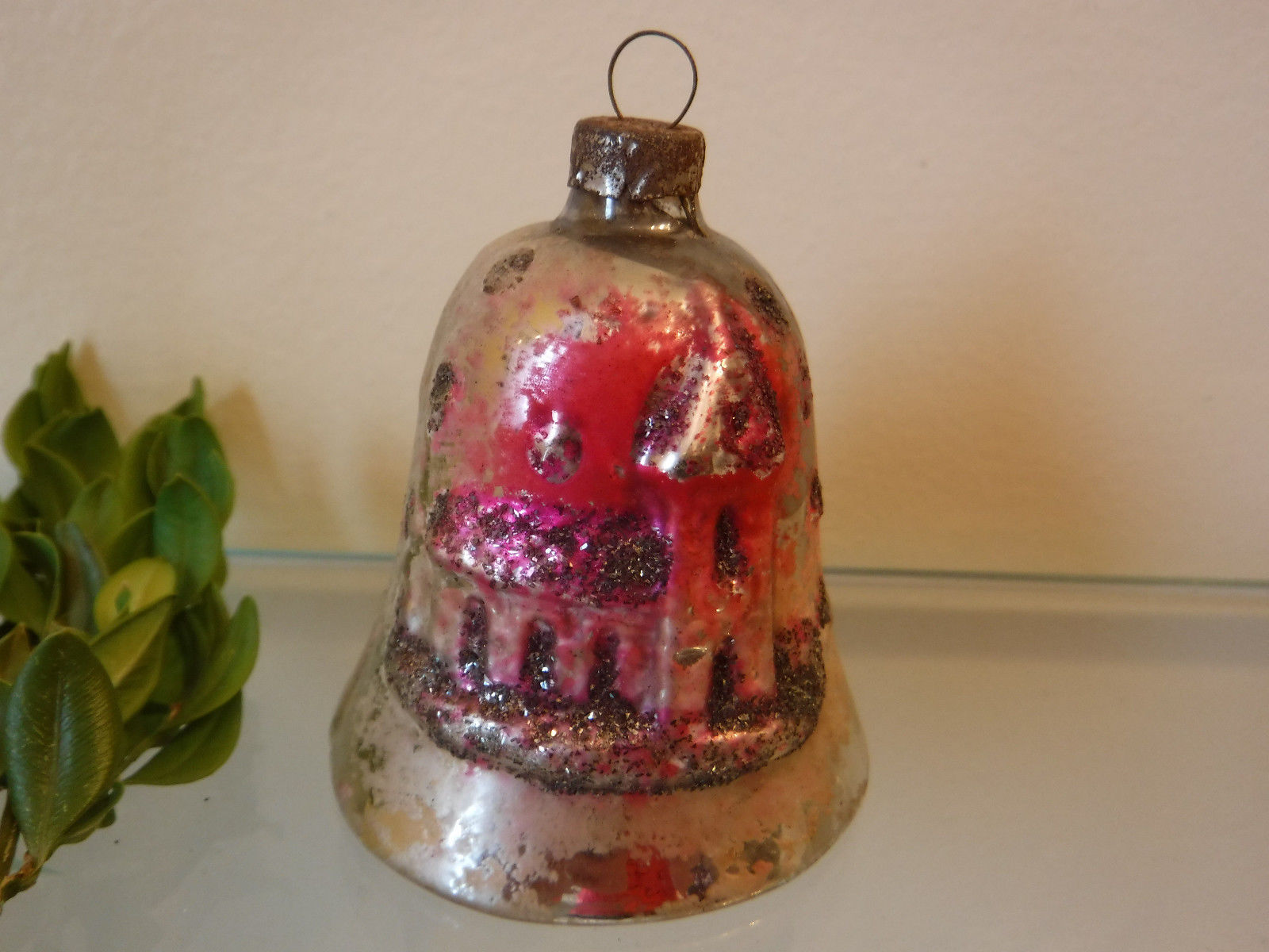 Title (ebay affiliate link): Antique Mercury Glass Christmas Bell Ornament Glass Clapper Mica Glitter 1920''s