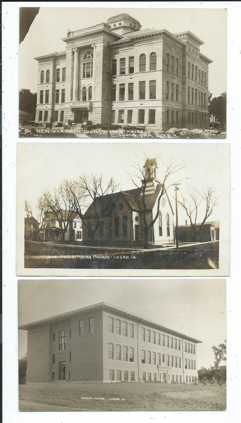 Lot of 3 RPPC Postcards Church Court House School Logan IA Iowa