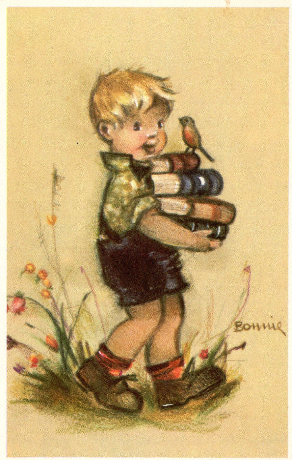 1950s ARTIST SIGNED BONNIE,ALFRED MAINZER LITTLE FOLKS POSTCARD,BOY books