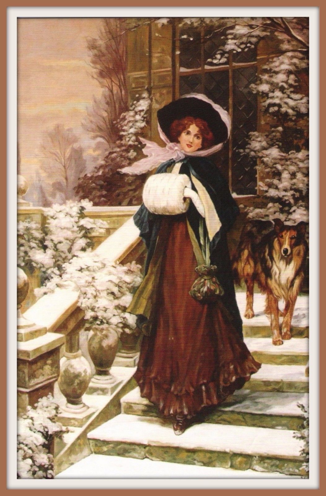 GIRL & COLLIE DOG Winter Fashion ART by Sydney Percy Kendrick Russian Postcard