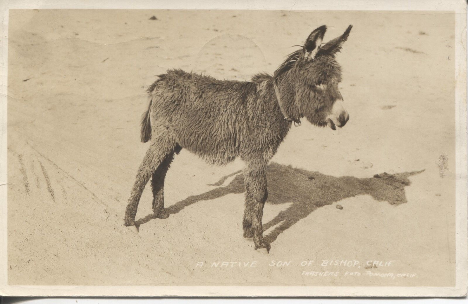 Title (ebay affiliate link): Real Photo Postcard RPPC Donkey Native son of Bishop California 1937