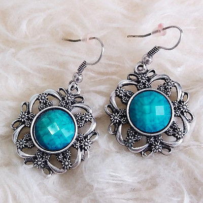 Title (ebay affiliate link): Vintage Womens Small Flower Antique-Silver-Metal-Color Blue Bead Hook Earrings