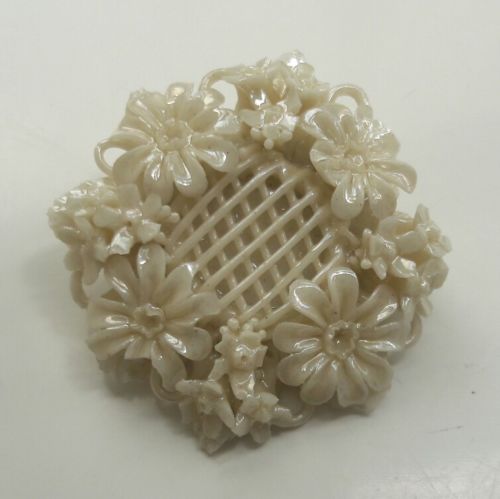 Title (ebay affiliate link): Lovely Antique Victorian White Porcelain Or Glass Floral Flower Brooch Gold Tone