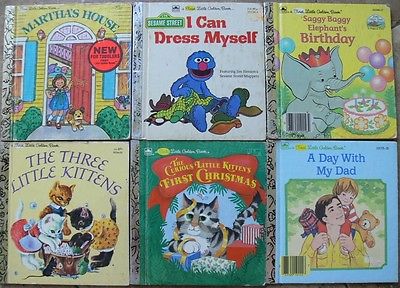Title (ebay affiliate link): 6 First Little Golden Books ~ A DAY WITH MY DAD, MARTHA''S HOUSE, THREE LITTLE