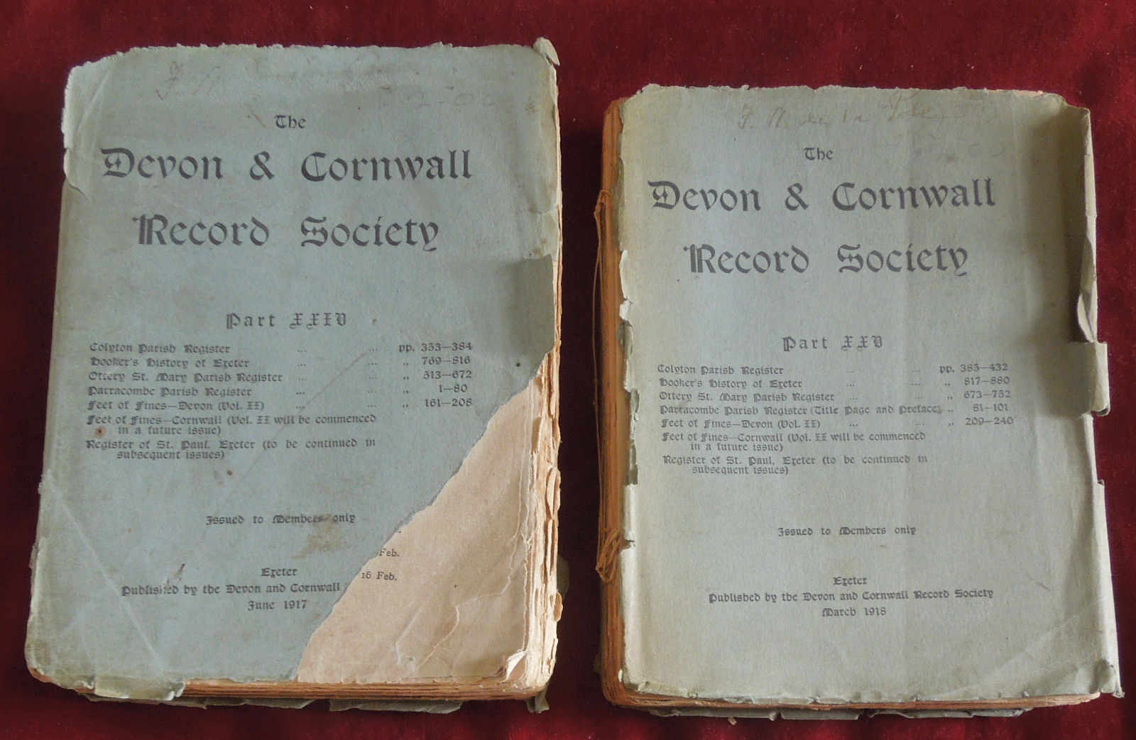 Title (ebay affiliate link): DEVON & CORNWALL RECORD SOCIETY PUBLICATIONS FOR 1917 & 1918