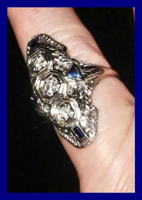 DIAMOND ESTATE RING--ANTIQUE, WITH SAPPHIRE ACCENTS
