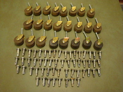 24 Wood Brass 1 5/8" CASTER WHEELS 56 Sleeves Replacement For Antique Furniture