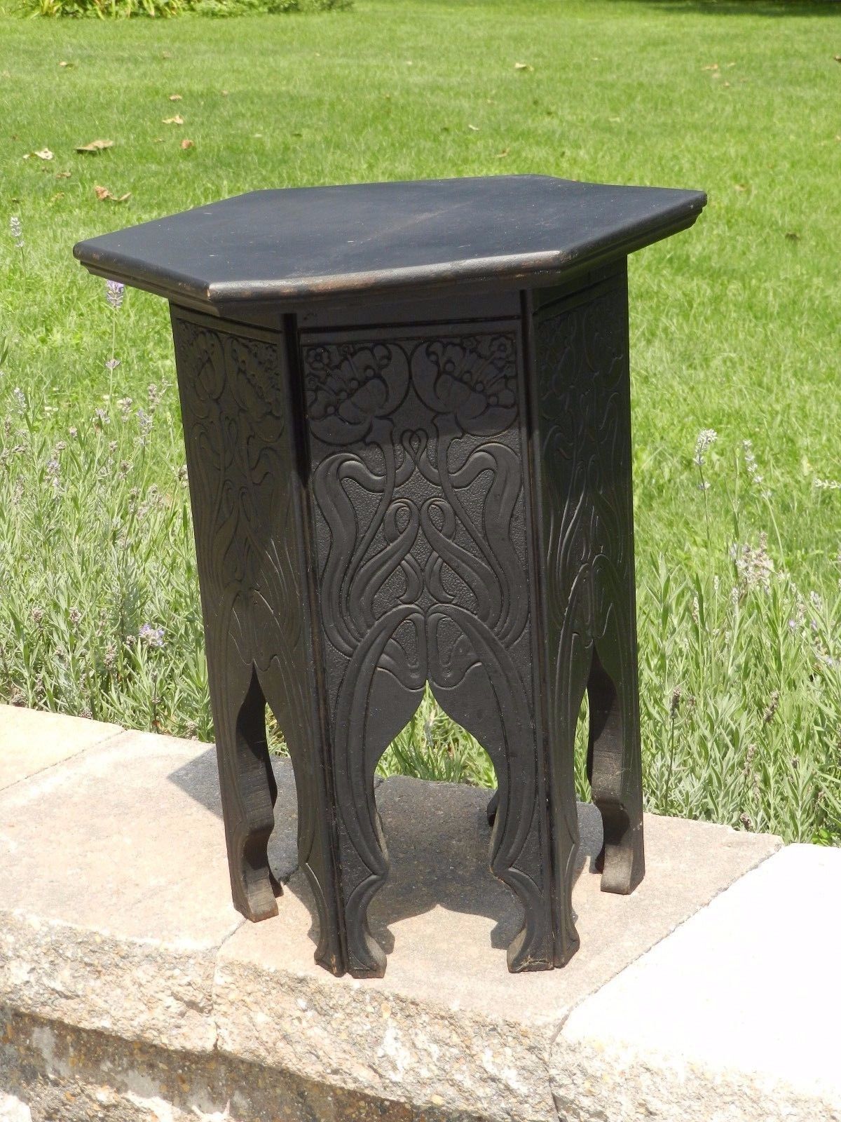 Title (ebay affiliate link): VTG ANTIQUE CARVED WOOD FLORAL ART NOUVEAU GOTHIC PLANT STAND END TABLE COTTAGE