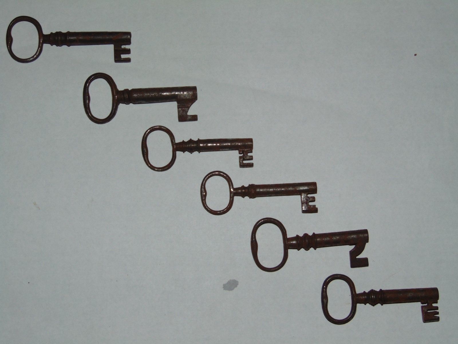 6 ANTIQUE 1800''s GEORGIAN KEYS FOR LARGER WRITING SLOPE BOX or SMALL FURNITURE