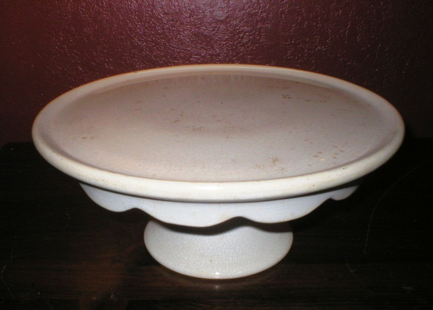 Title (ebay affiliate link): Early Antique K.,T. & K. GRANITE~White 12" CAKE STAND~Late 19thC~Heavy Stoneware