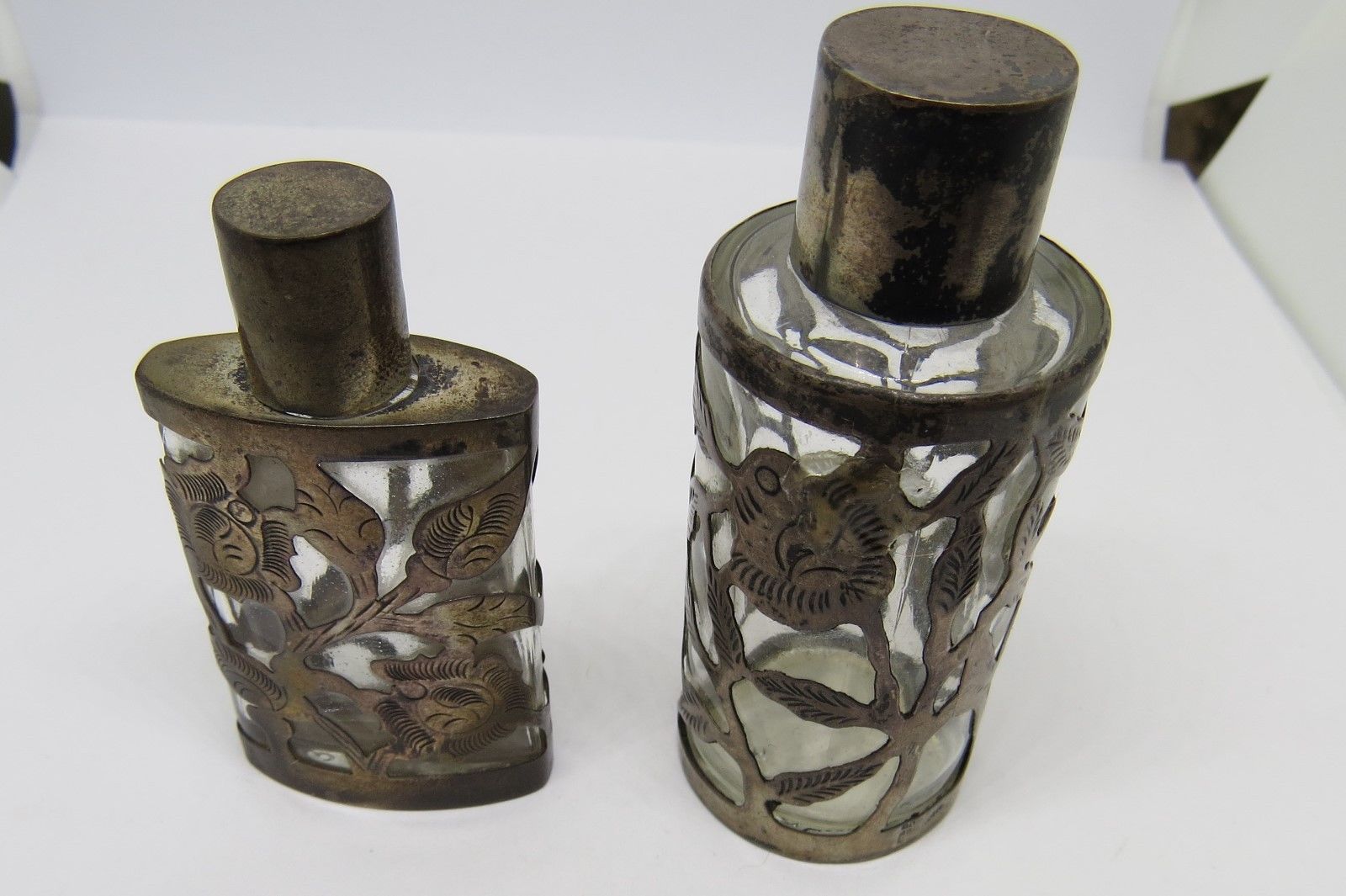 2 Vintage Sterling Silver Glass Perfume Scent Bottles
