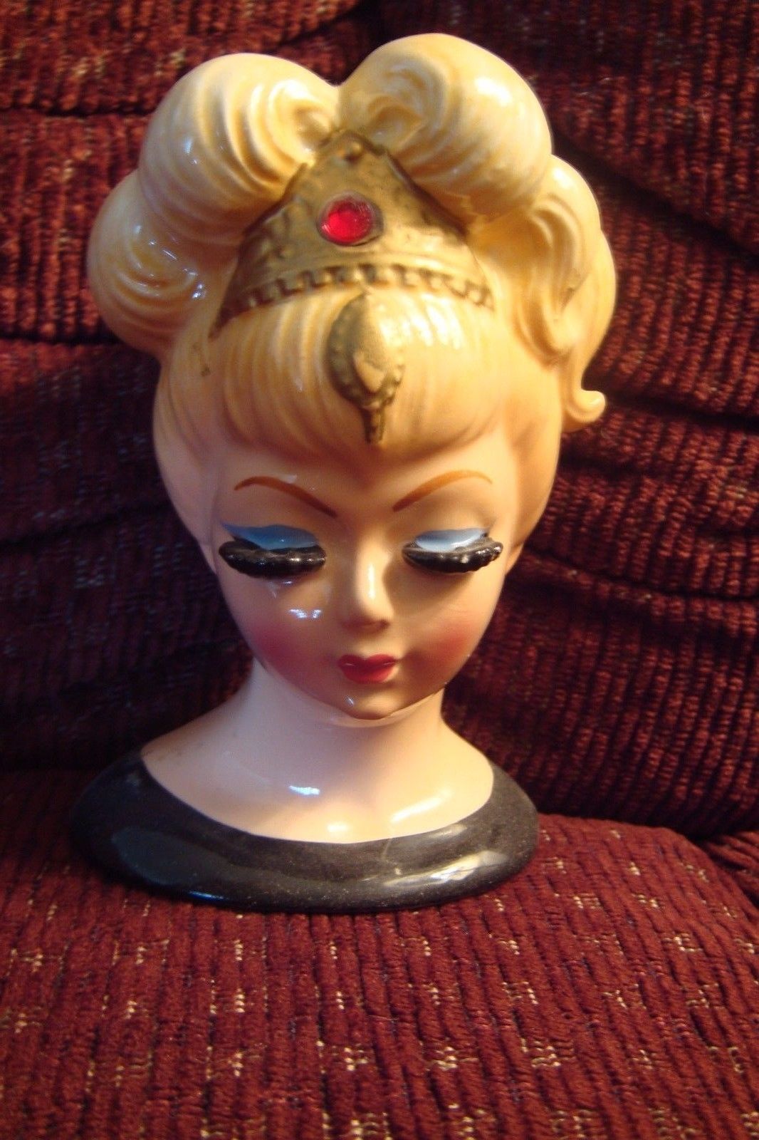 Title (ebay affiliate link): VINTAGE PORCELAIN LEFTON''S MADE IN JAPAN SMALL LADY VASE WITH JEWEL HEAD TIARA